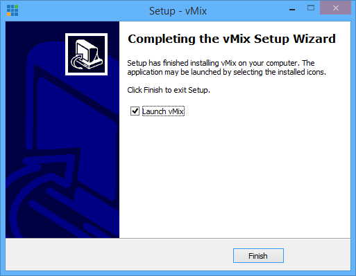 Once the setup is completed you can start using vMix broadcaster, by clicking the Finish button: