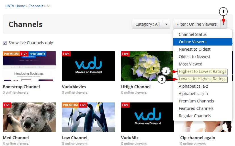 2. Select to view displayed the channels with the highest ratings first