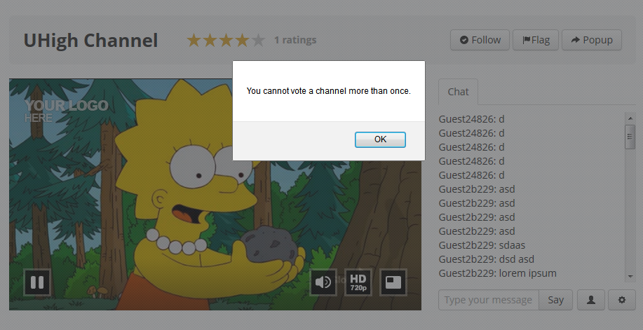 Users can rate a channel/video only once. Second ratings on the same content are now allowed: