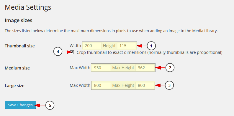 The Media Settings page controls the various settings related to images and other media that are used in writing posts and pages.