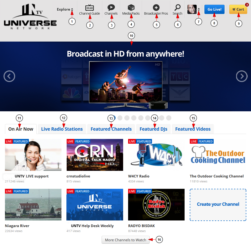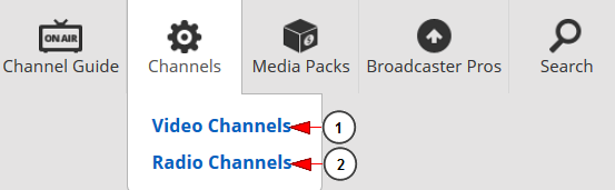 3. Hover the mouse over the Channels tab to view the drop-down menu.