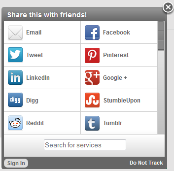 30. Click here to share Streaming platform using a social media network. A pop up window will be displayed and you can select the desired social network: