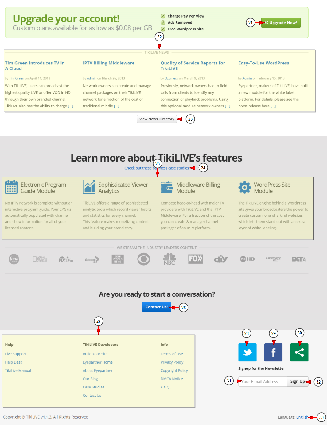 27. Here you can view and access the Help, Streaming platform developers and Info footer area.