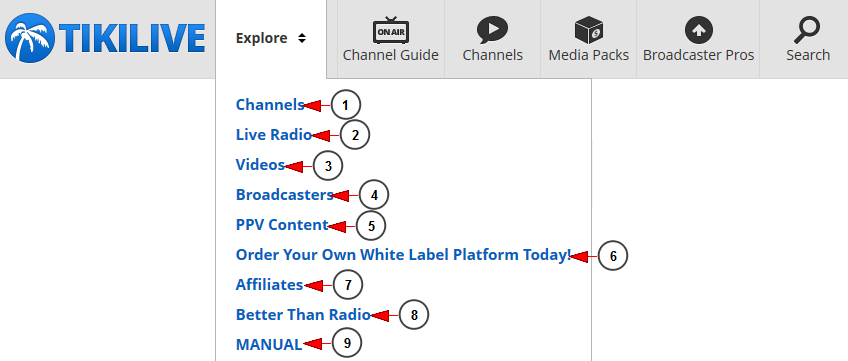 1. Hover the mouse over the Explore tab to view drop down menu.